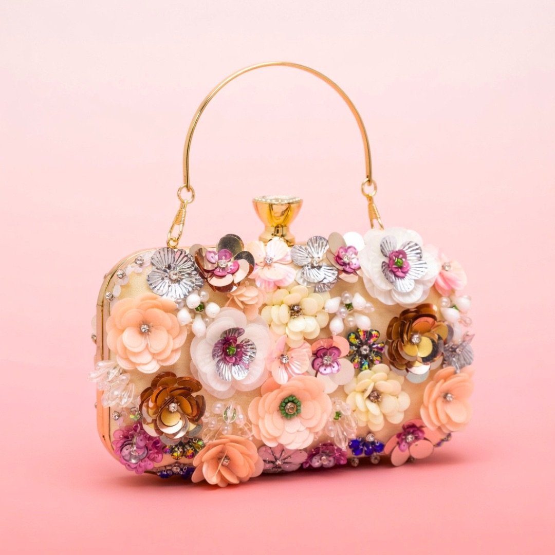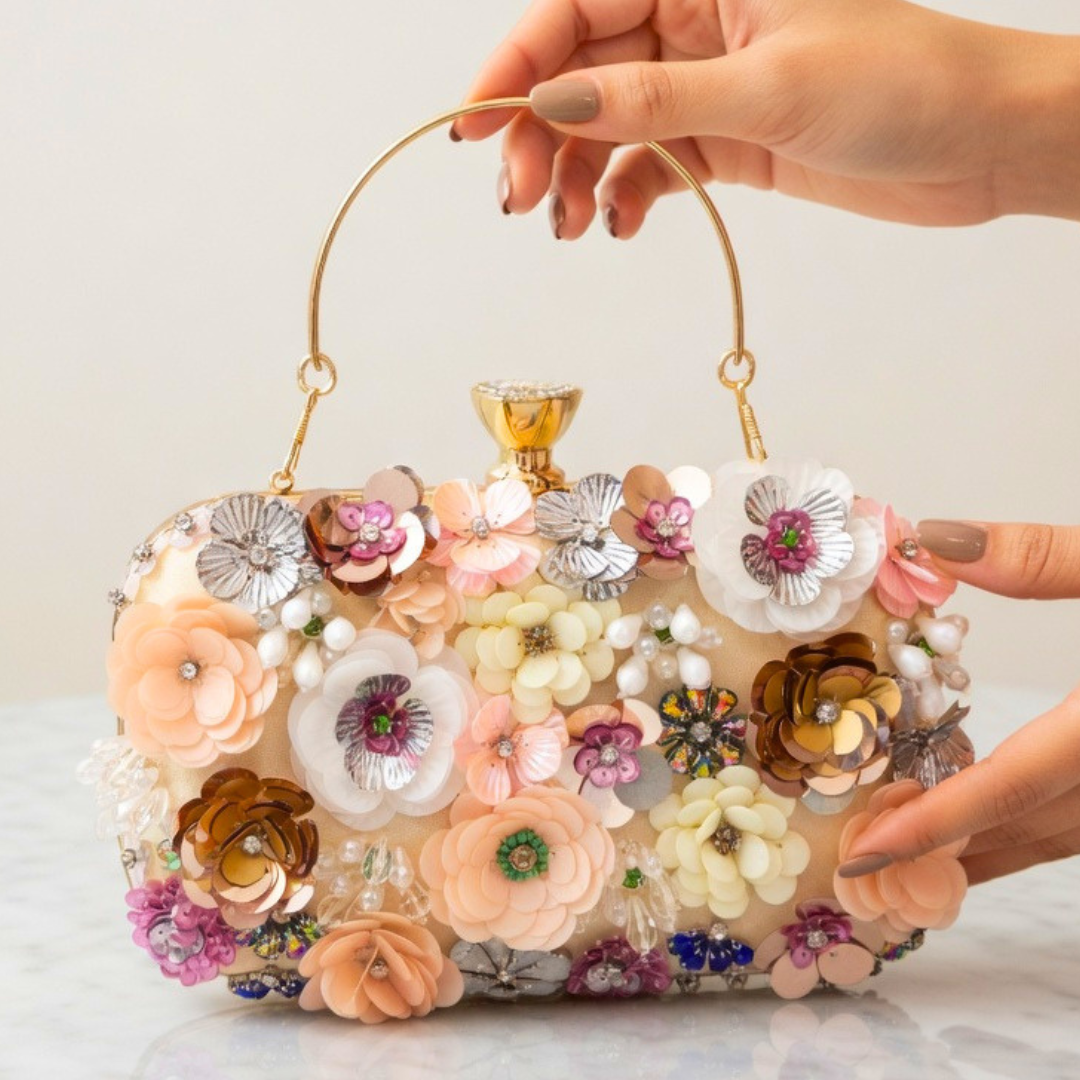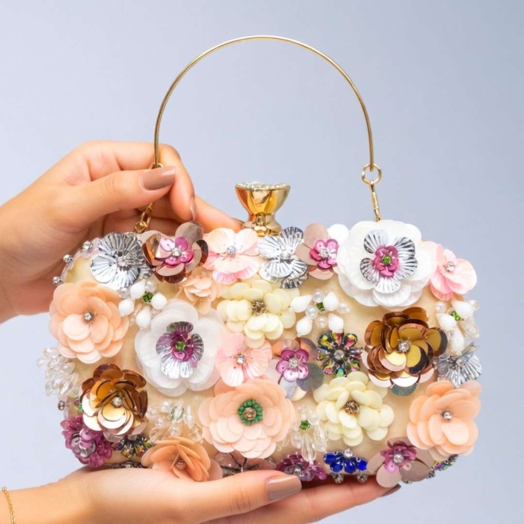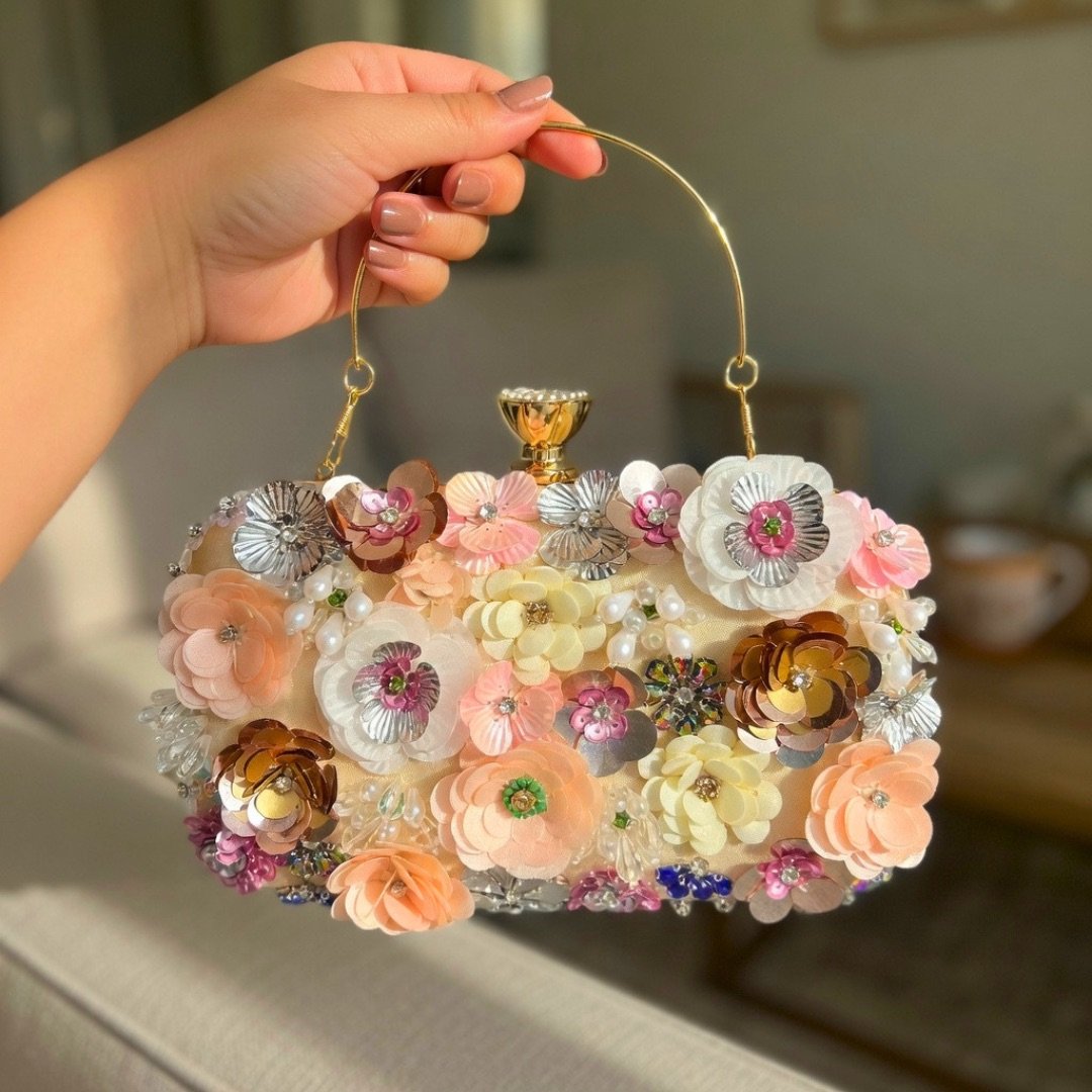 Soft cream tones and subtle pearl accents make this clutch a graceful choice for weddings or formal events, blending classic beauty with modern style.